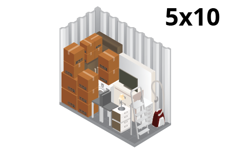 These 5×10 units are approximately the size of a walk-in closet. These spaces are perfect for storing minimal amounts of furniture, sofas, chairs, chests of drawers, or mattresses, basically an entire bedroom. For our business customers, this is the perfect space to store your office equipment.